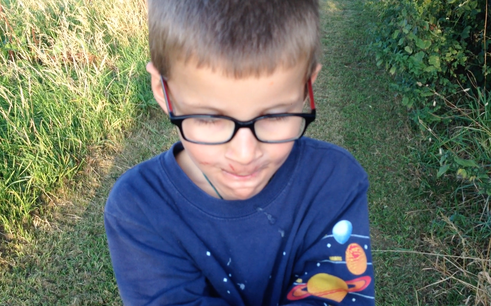 The boys are experts at picking, although Gabriel needs help because after he picks the lower rungs clean, he cannot reach the berries above. Come to think of it, I believe this is the only time in his life he asked anybody for help, insisting as he does on accomplishing all things independantly.