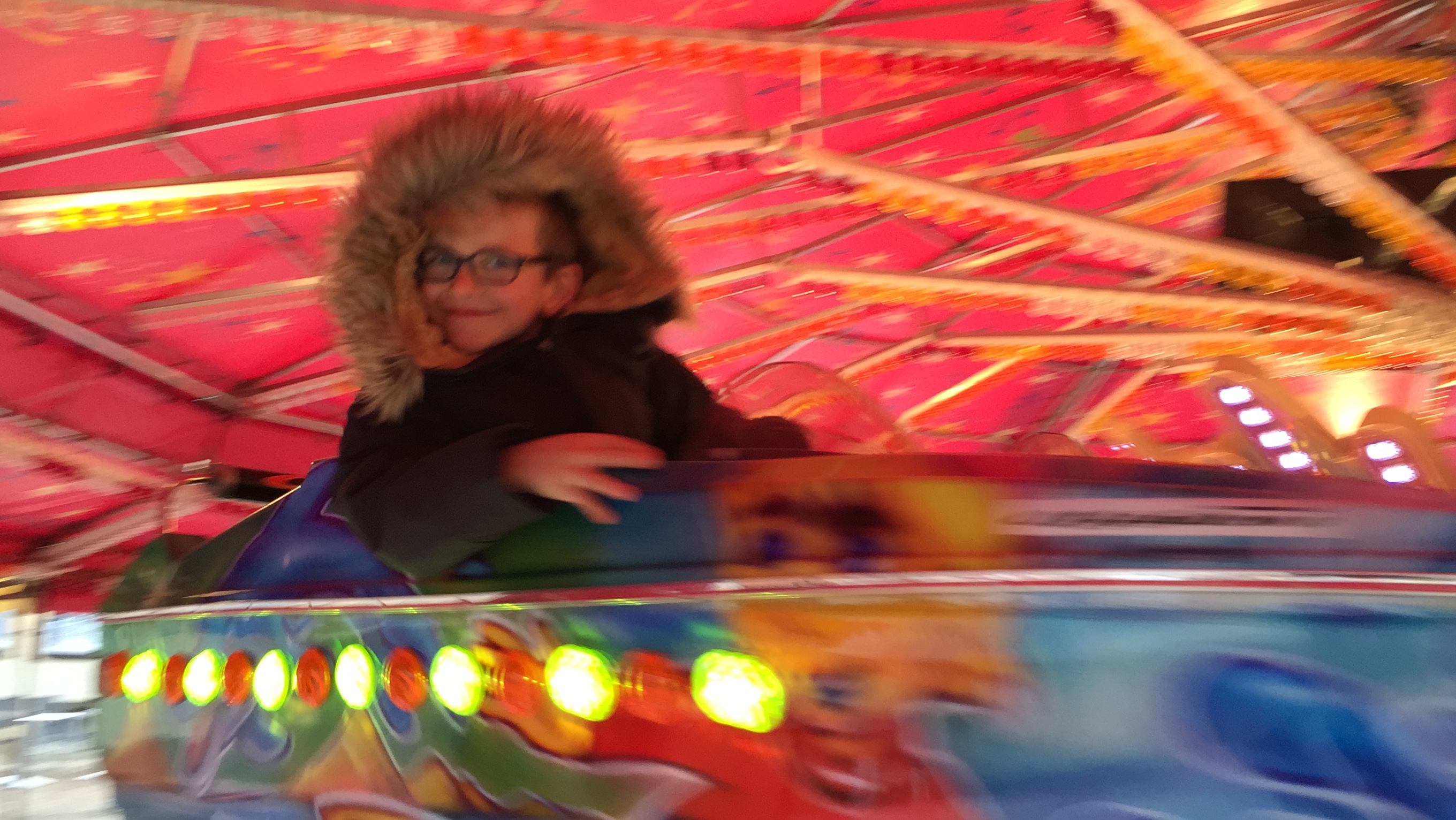 Today, he went twice, trying out two different cars/planes. He would have gone on more, but we all were too impatient to make it over to the ferris wheel.
