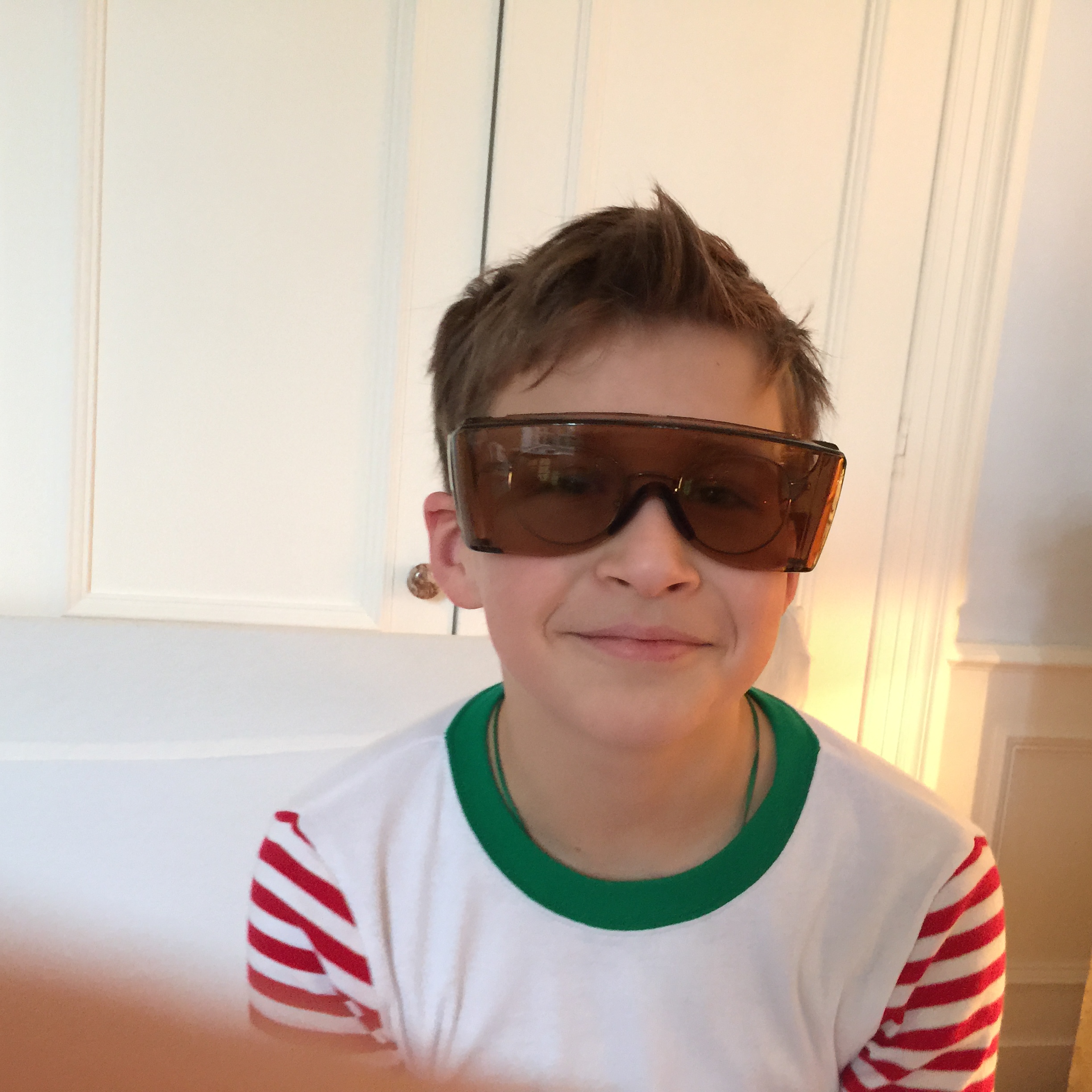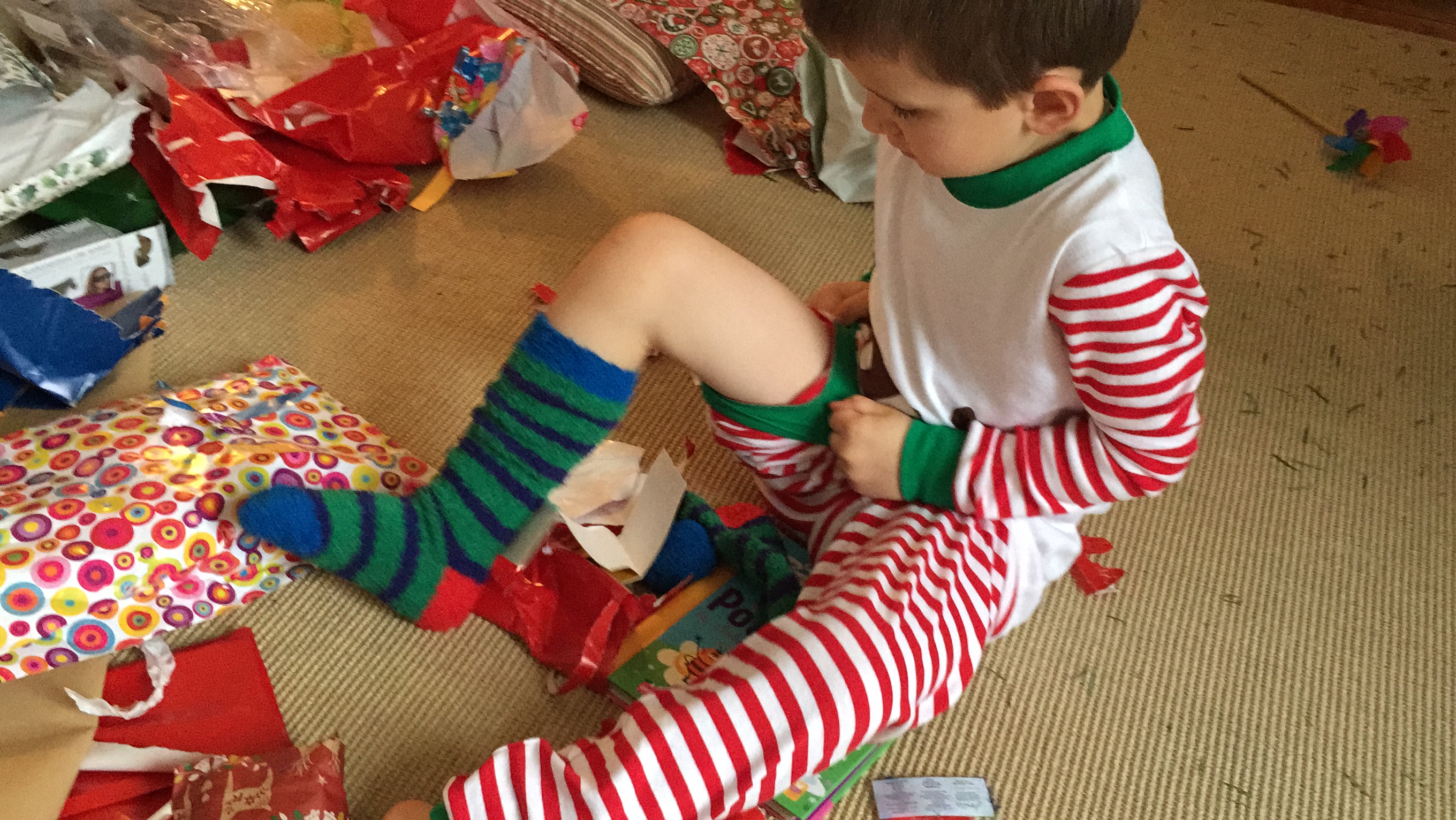 Gabriel tries on a neat pair of new socks, which he took an instant liking to