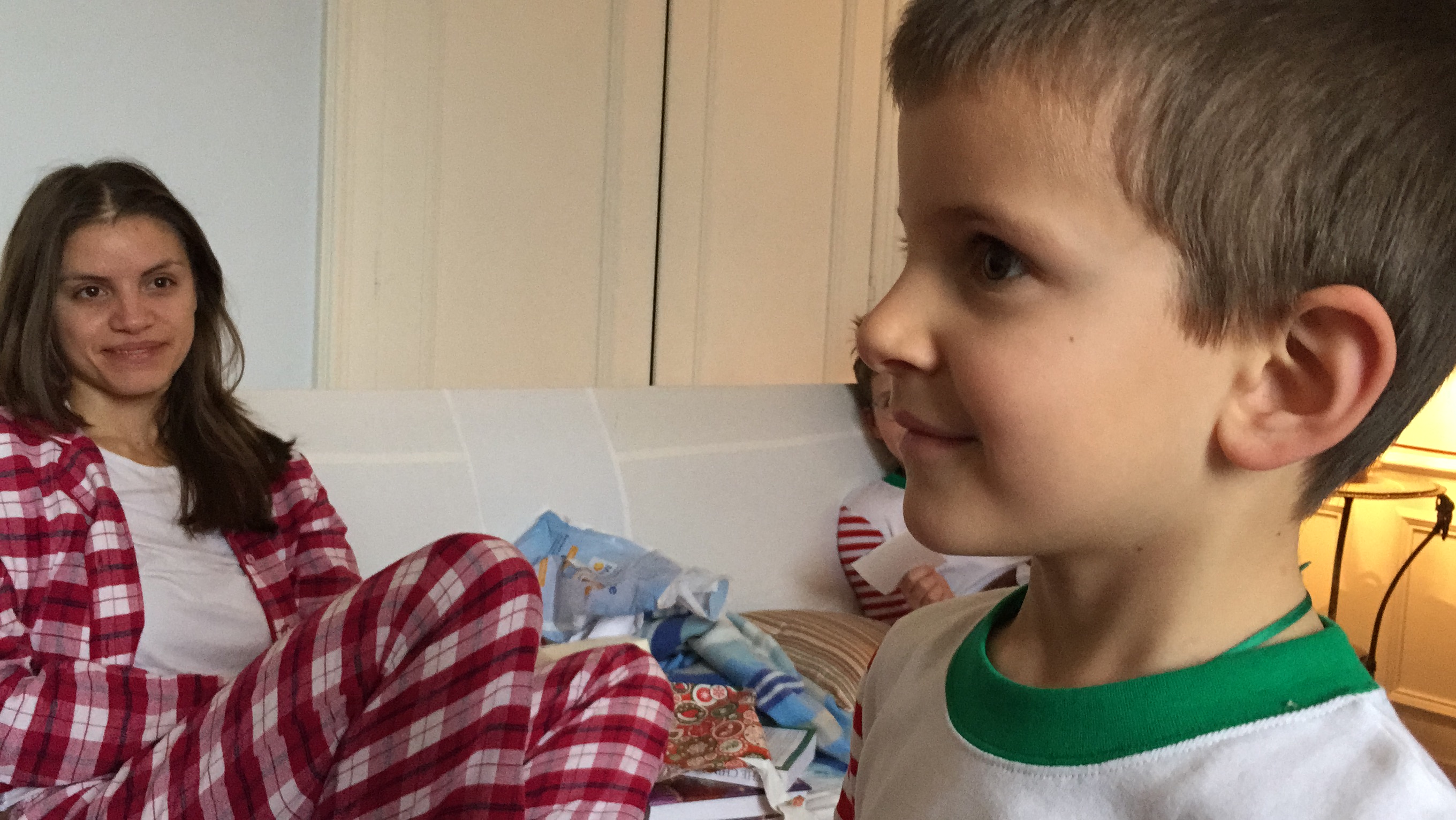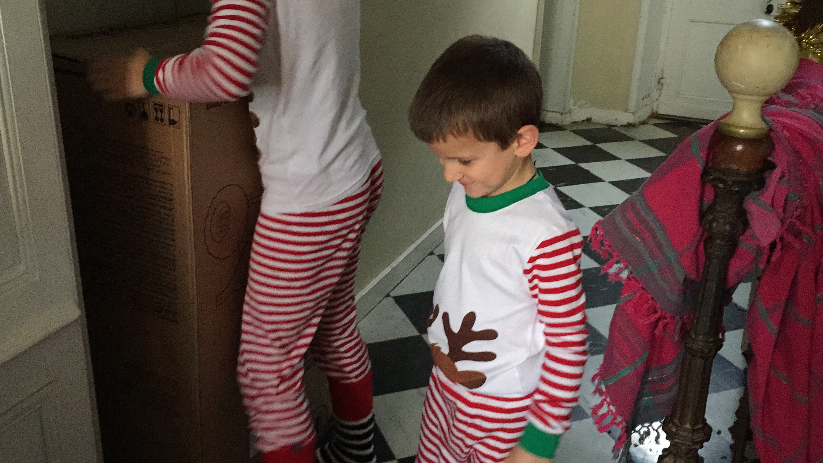 Mama got stands and camera equipment to go with her iPad, so she can do interviews with people for her work, so she was very happy that Santa Claus came.