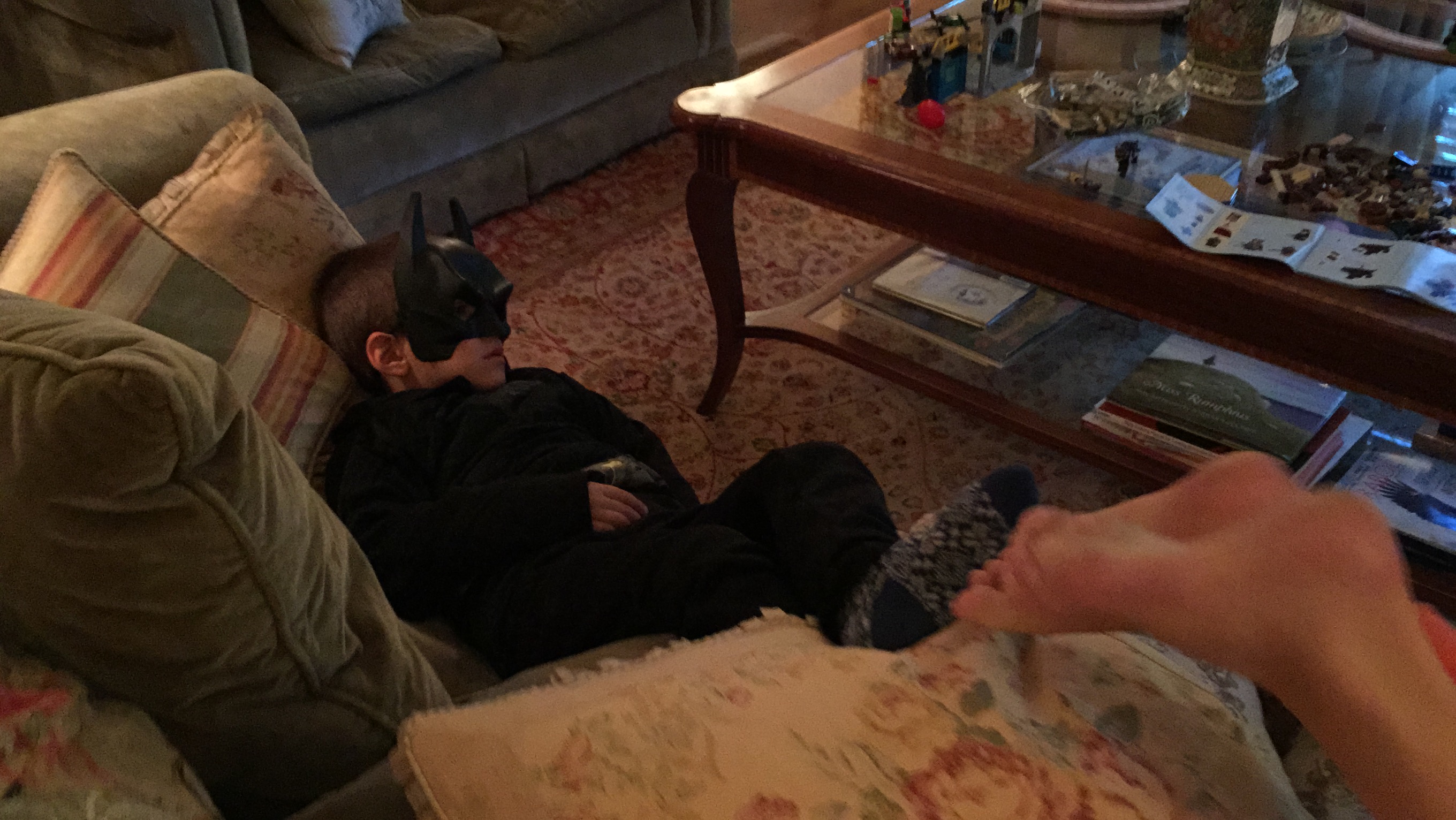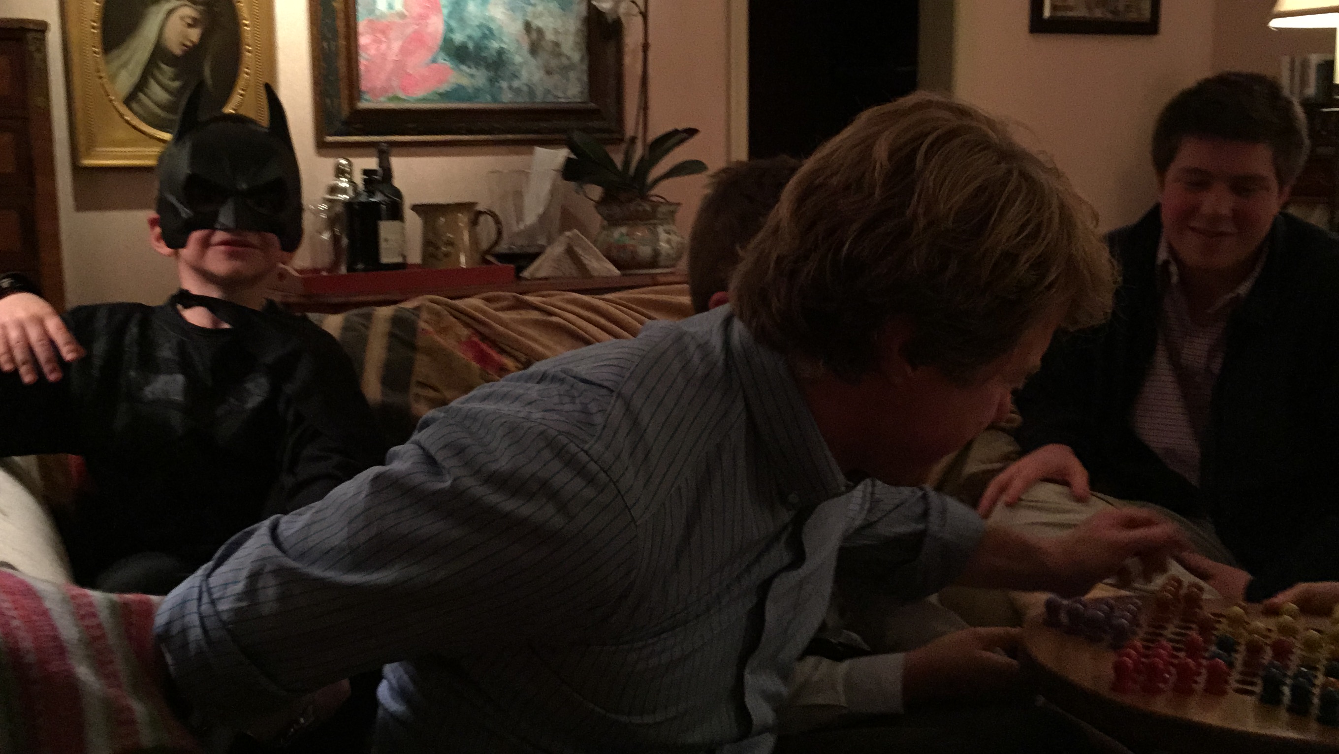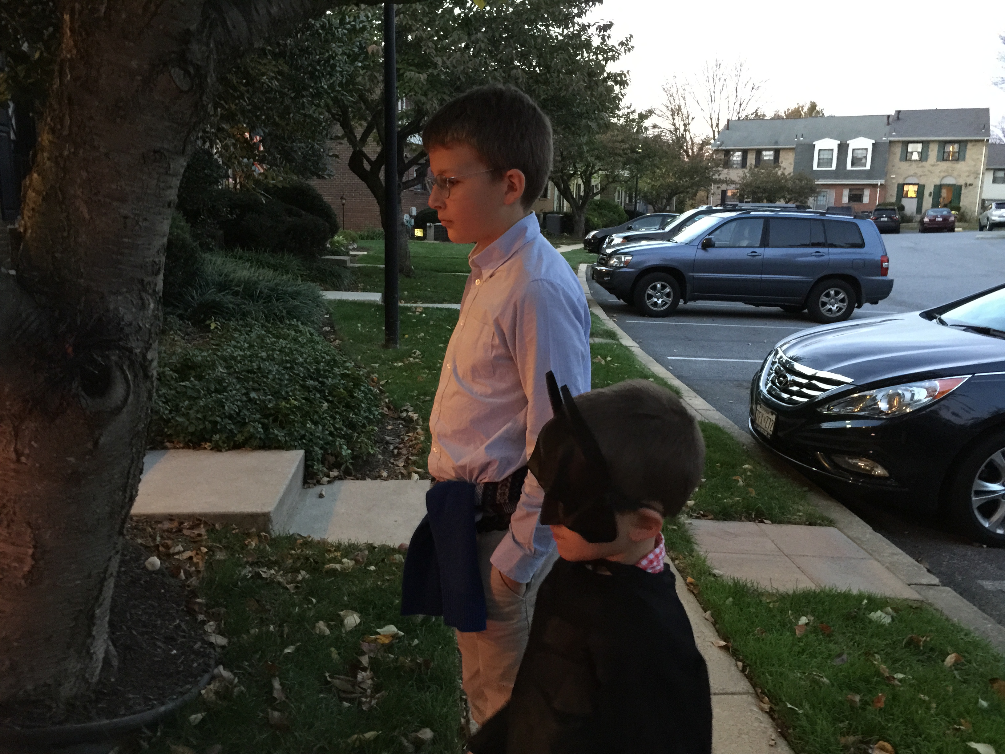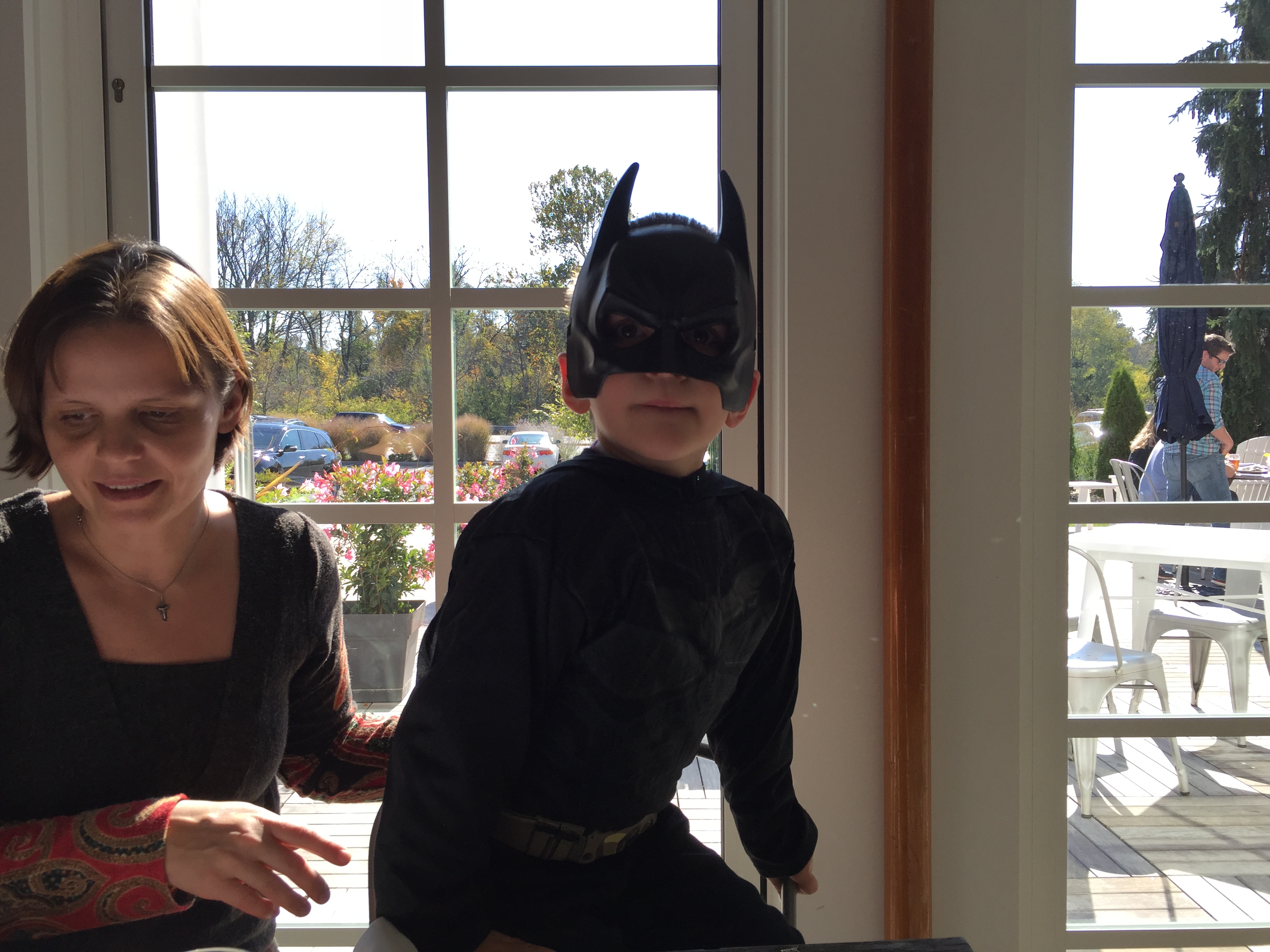 When asked what costumes they wanted to wear for Halloween, Gabriel said Batman, and Maxime an English Royal Guard. This had been determined weeks before we came to the States, and they were both anxious to try on their costumes once we arrived.