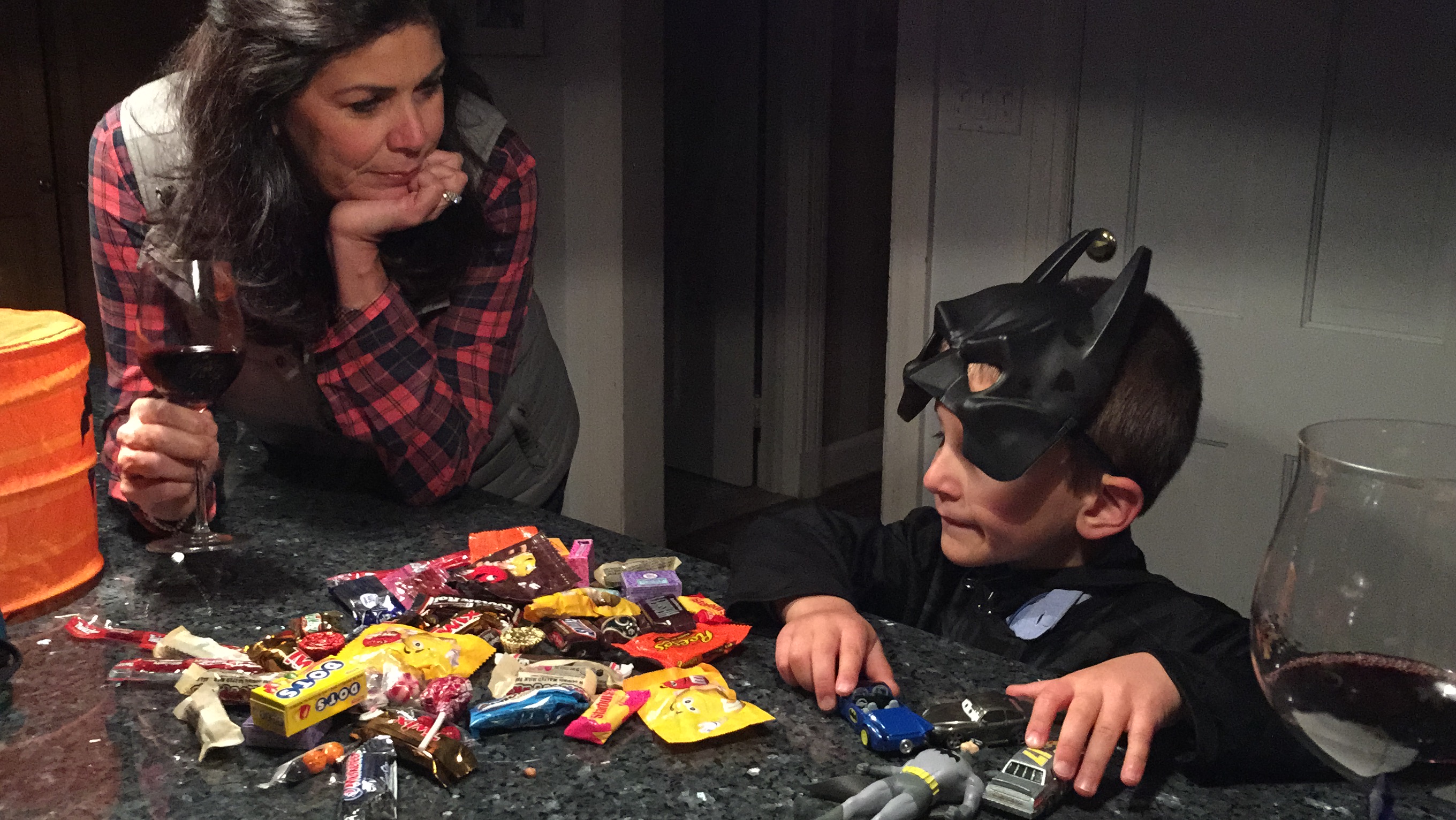 Olivia Goldsborough surveying Gabriel's Halloween candies