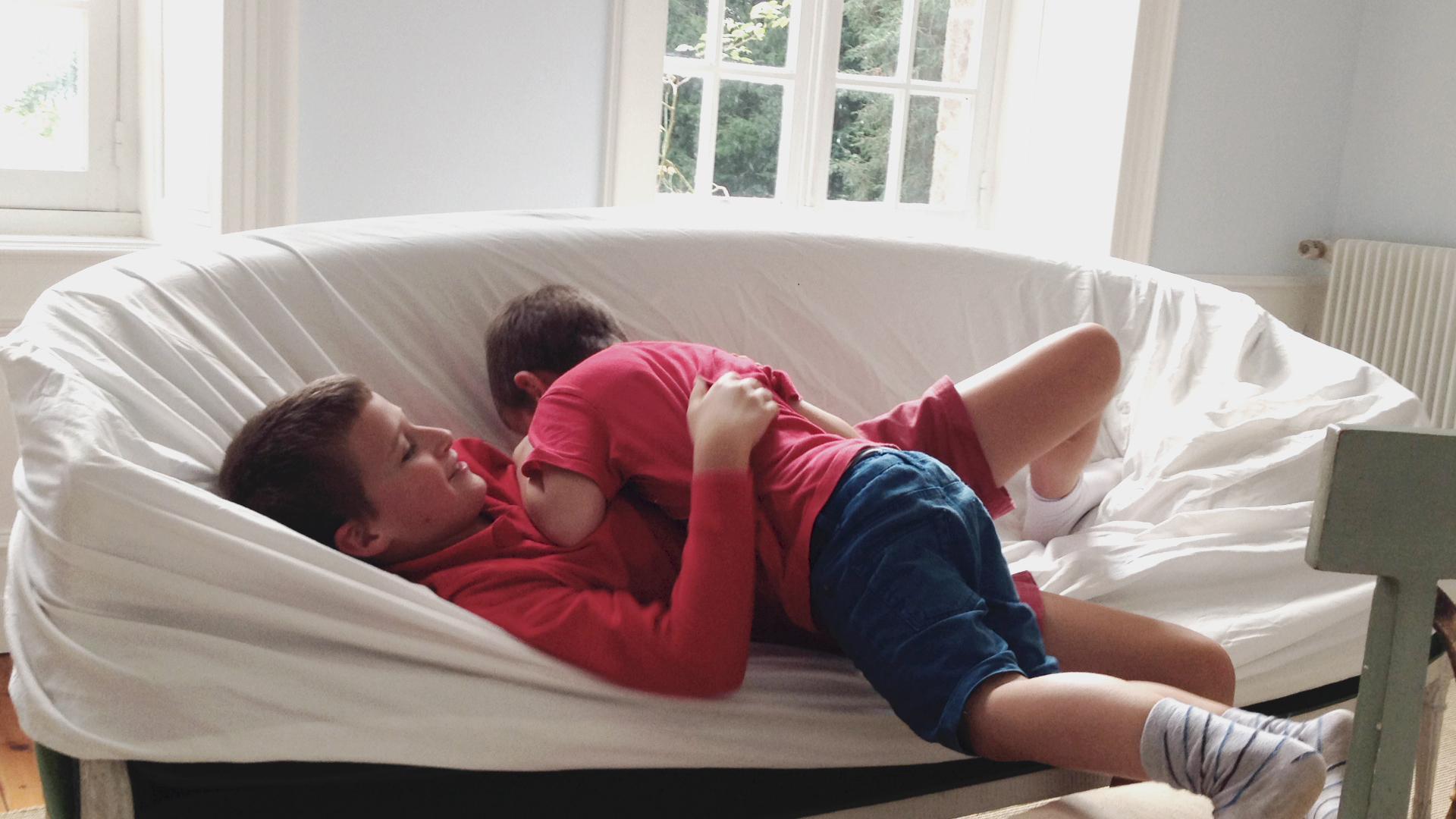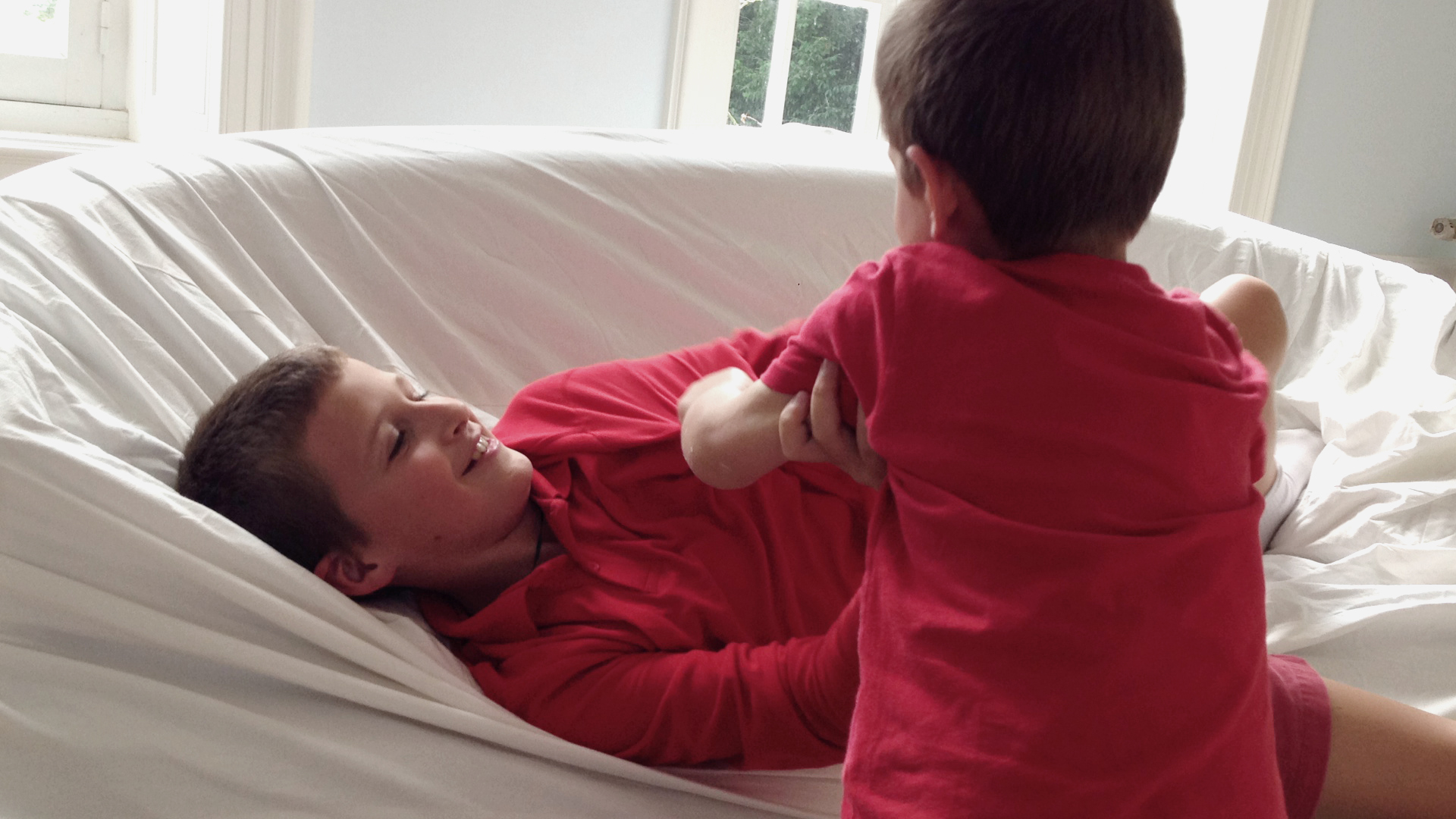 But I have noticed that Maxime has a built-in, self-learned habit of protecting his brother from getting hurt. Even, or especially, when they start to really horse around, serious-like.