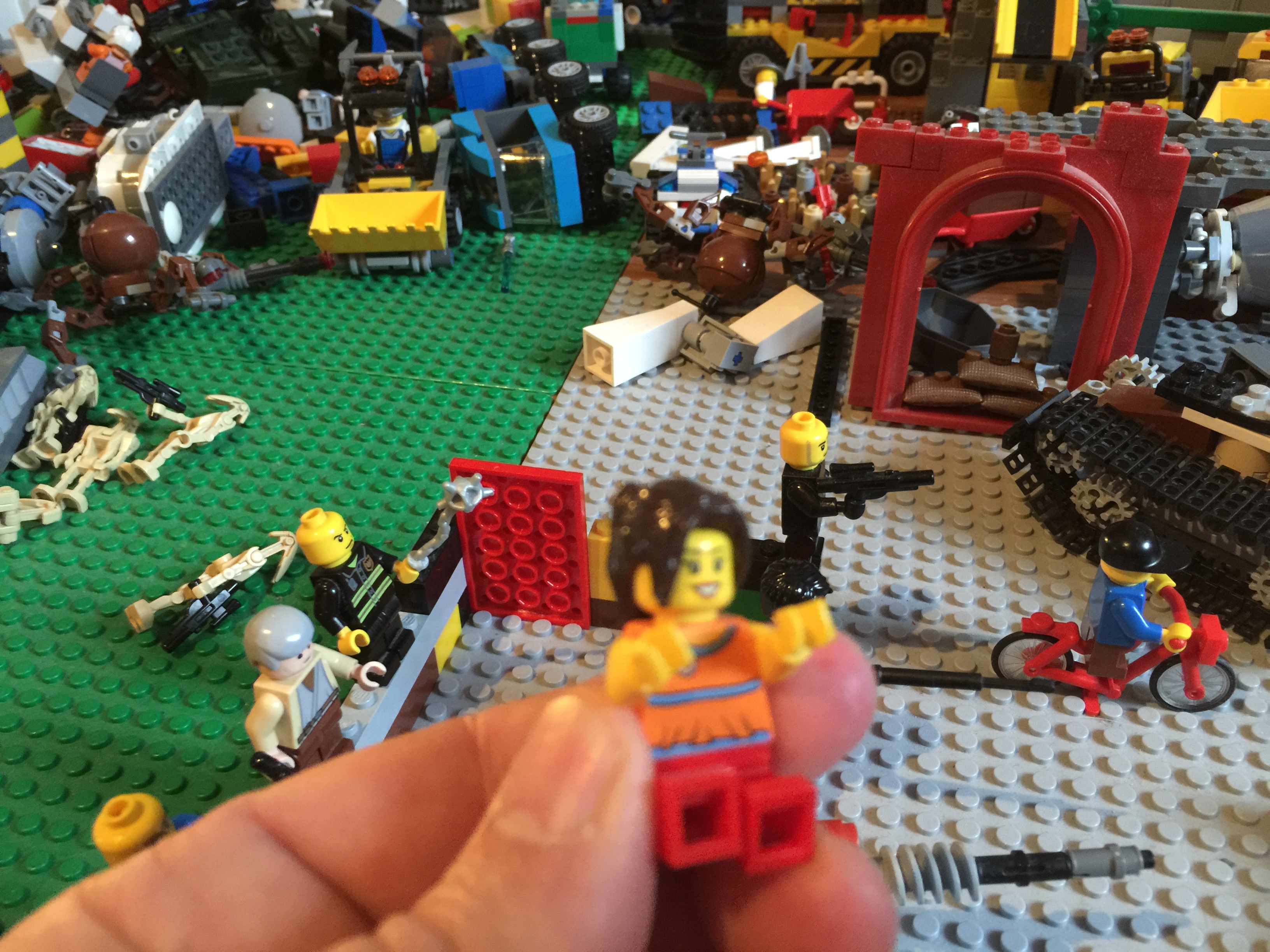 Sometimes we play a sort of "city" game, where things are peaceful, and other times it is more of a battle scenario. Okay, so guess which one Maxime prefers.