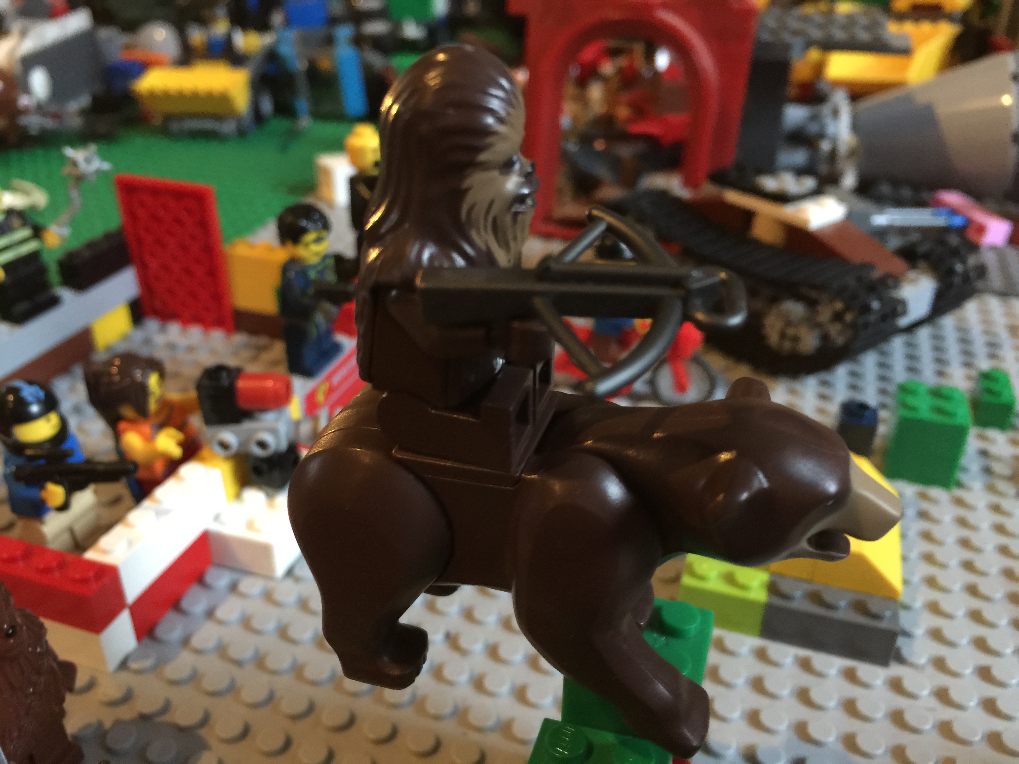 C) A Wookie with a crossbow, riding on a bear