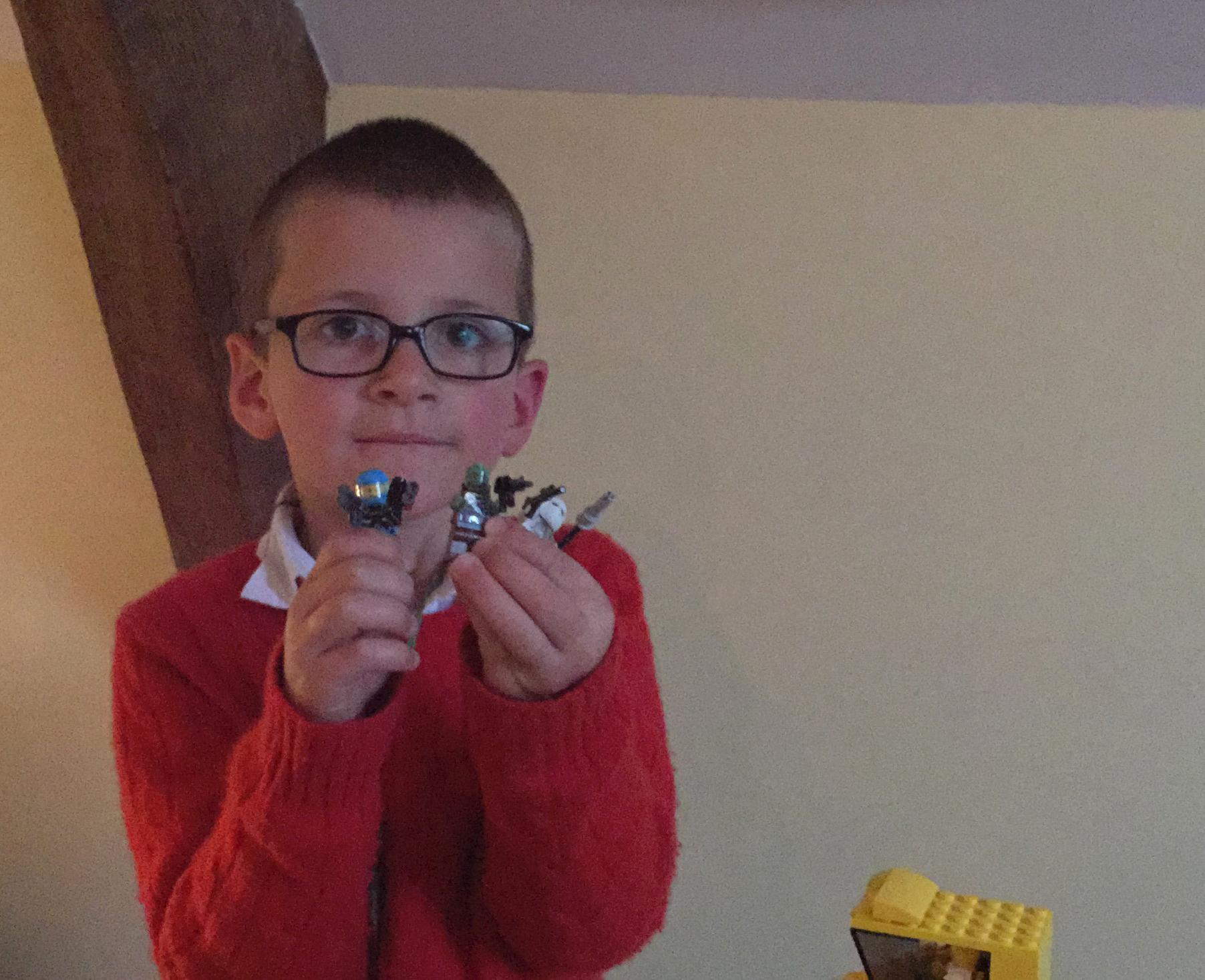And little Gabriel, meanwhile, was standing at the other side of the table, playing on his own, not wishing to interfere with the big guys. Gabriel doesen't even like battles or fighting things at all, bless his sweet heart.