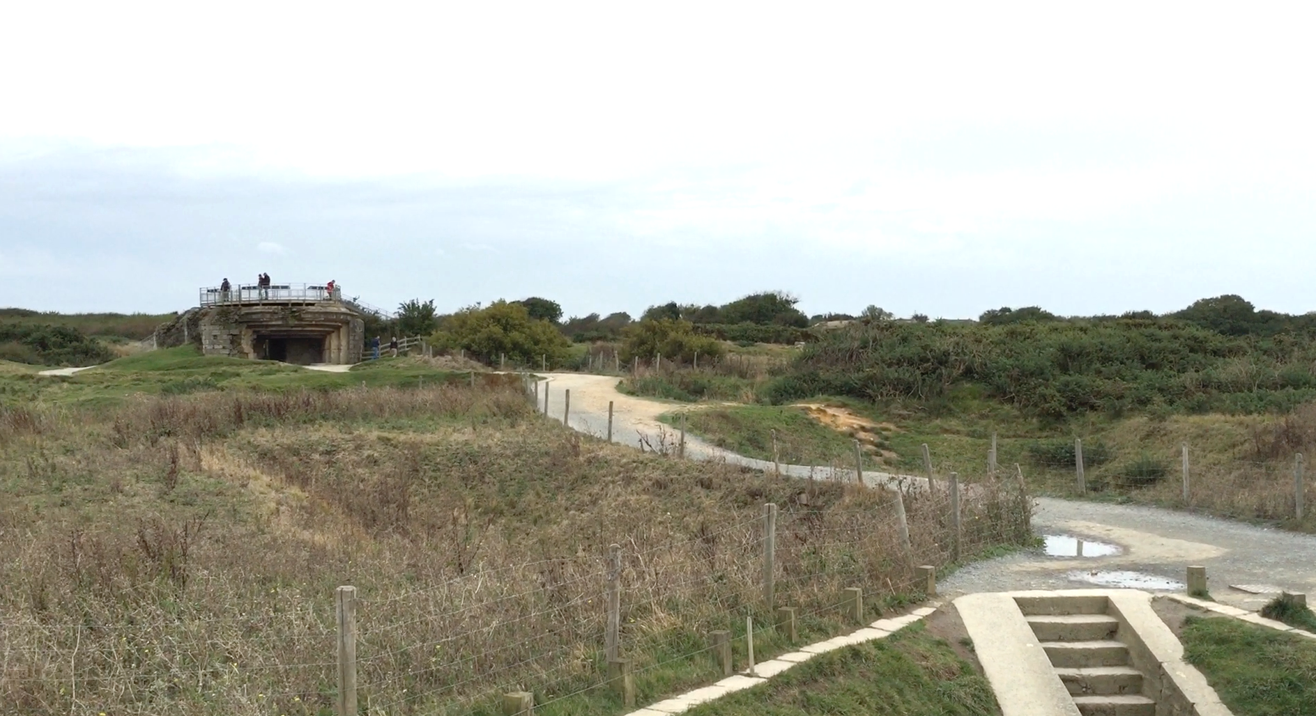 We went also to the Pointe du Hoc, the sheer cliffs where the American Rangers scaled the cliffs just below an important German artillery battery. The irony was that when they got to the top, there were no guns. No guns in use, anyway. They had been moved inland and camoflaged just prior to the invasion. The Rangers found them later and disabled them.