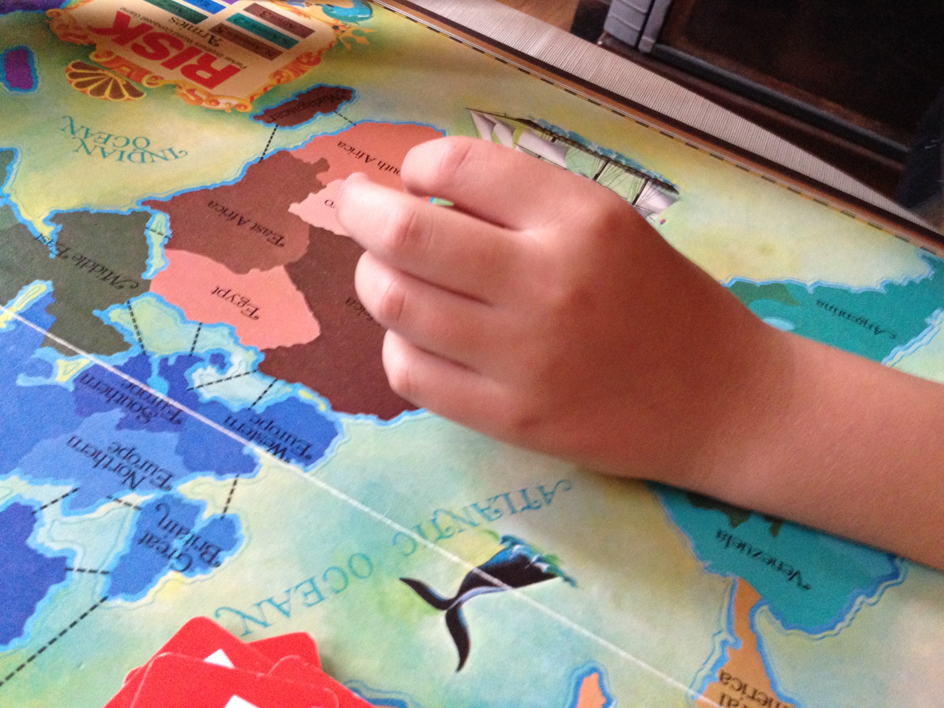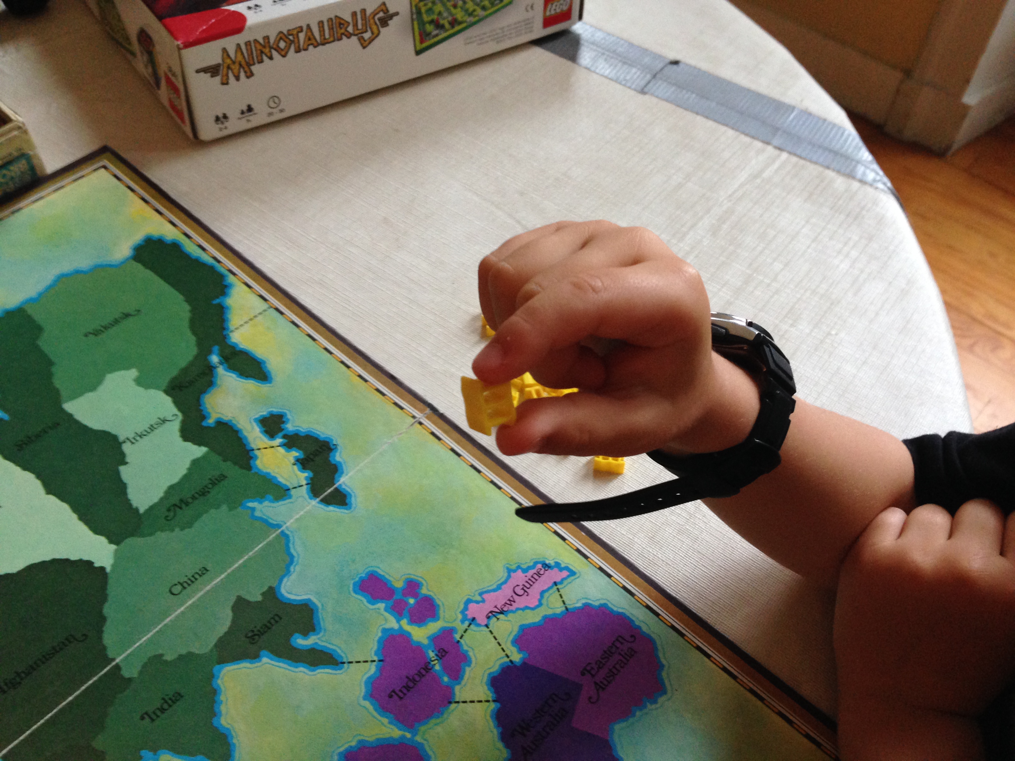 But I got off track. Back to Maxime, and this Risk game. So Maxime was all enthusiastic to teach Gabriel Risk. And, of course, Gabriel was thrilled that his older brother was going to teach him a big boy game, a game he had eyed from afar for a couple years, as Maxime plays often with Simeon.