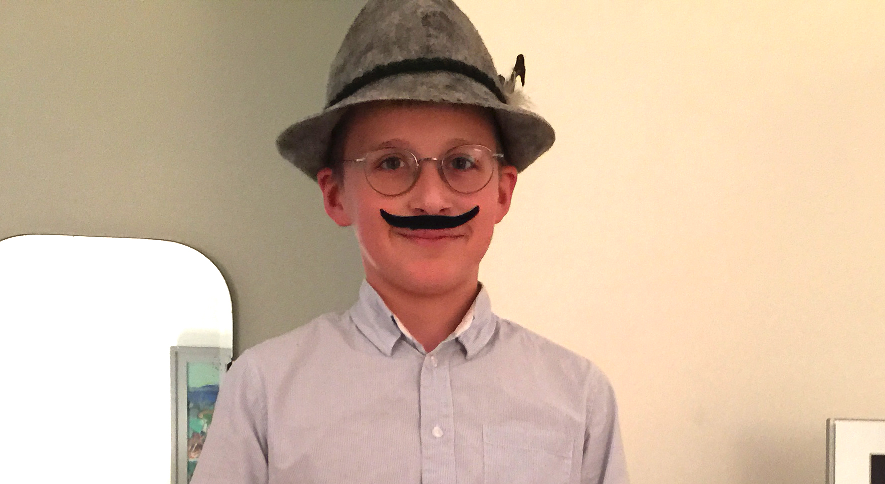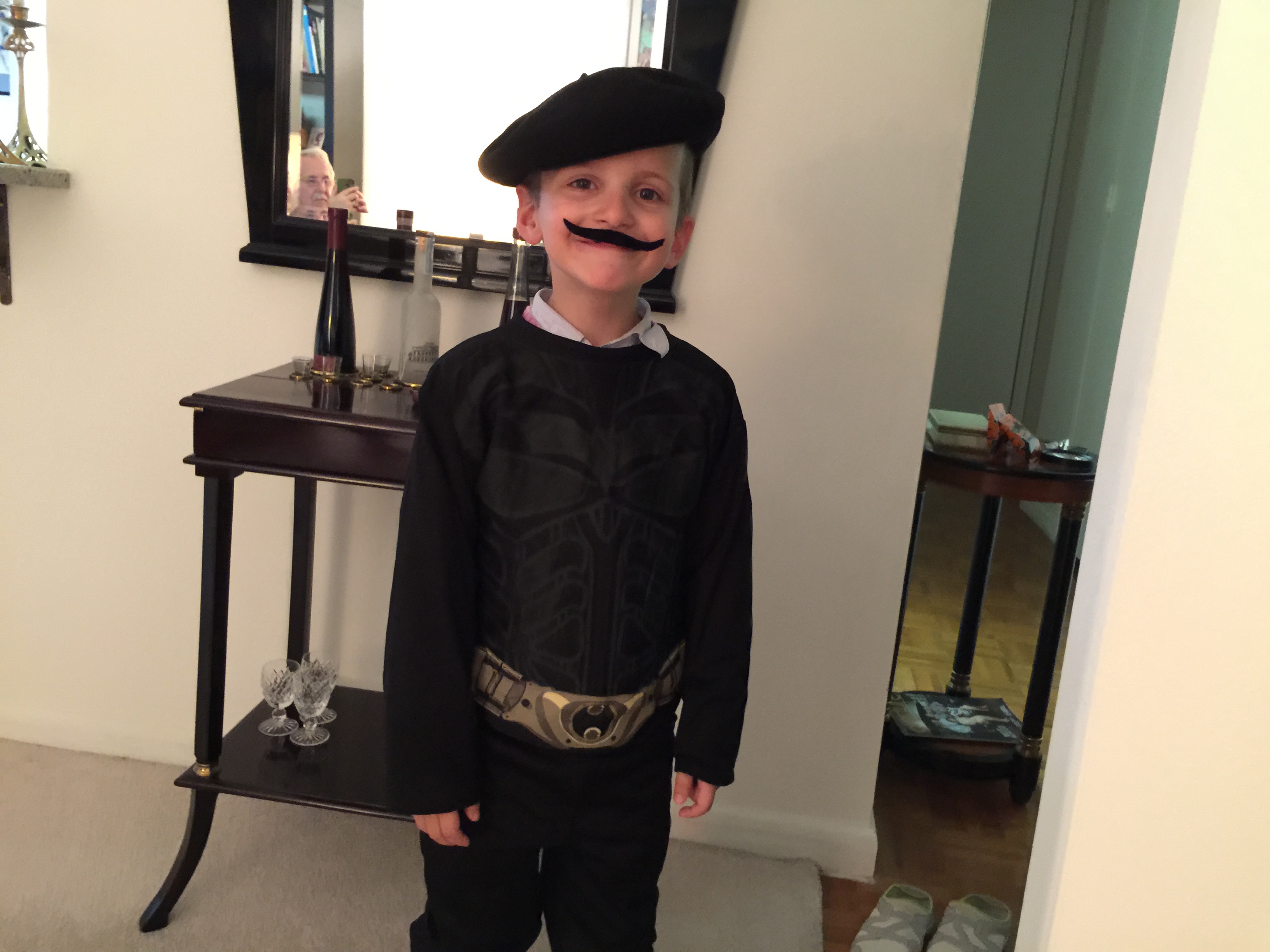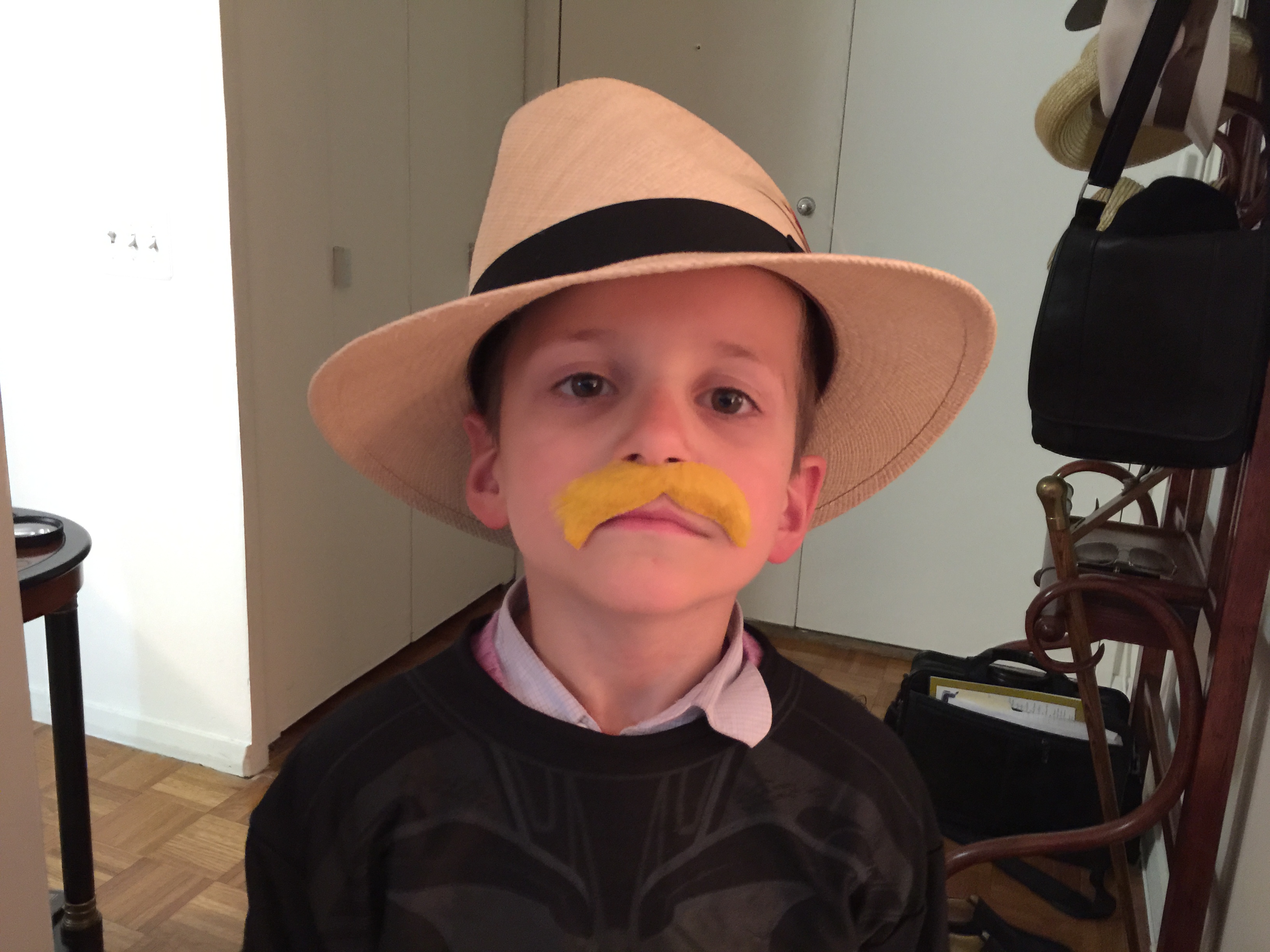 Not only that, but Grandpere has a immense collection of interesting hats, in all sorts of styles, from all different countries and climes. So, I gave a little hand to the boys, to play the "match the mustache with the hat" game.