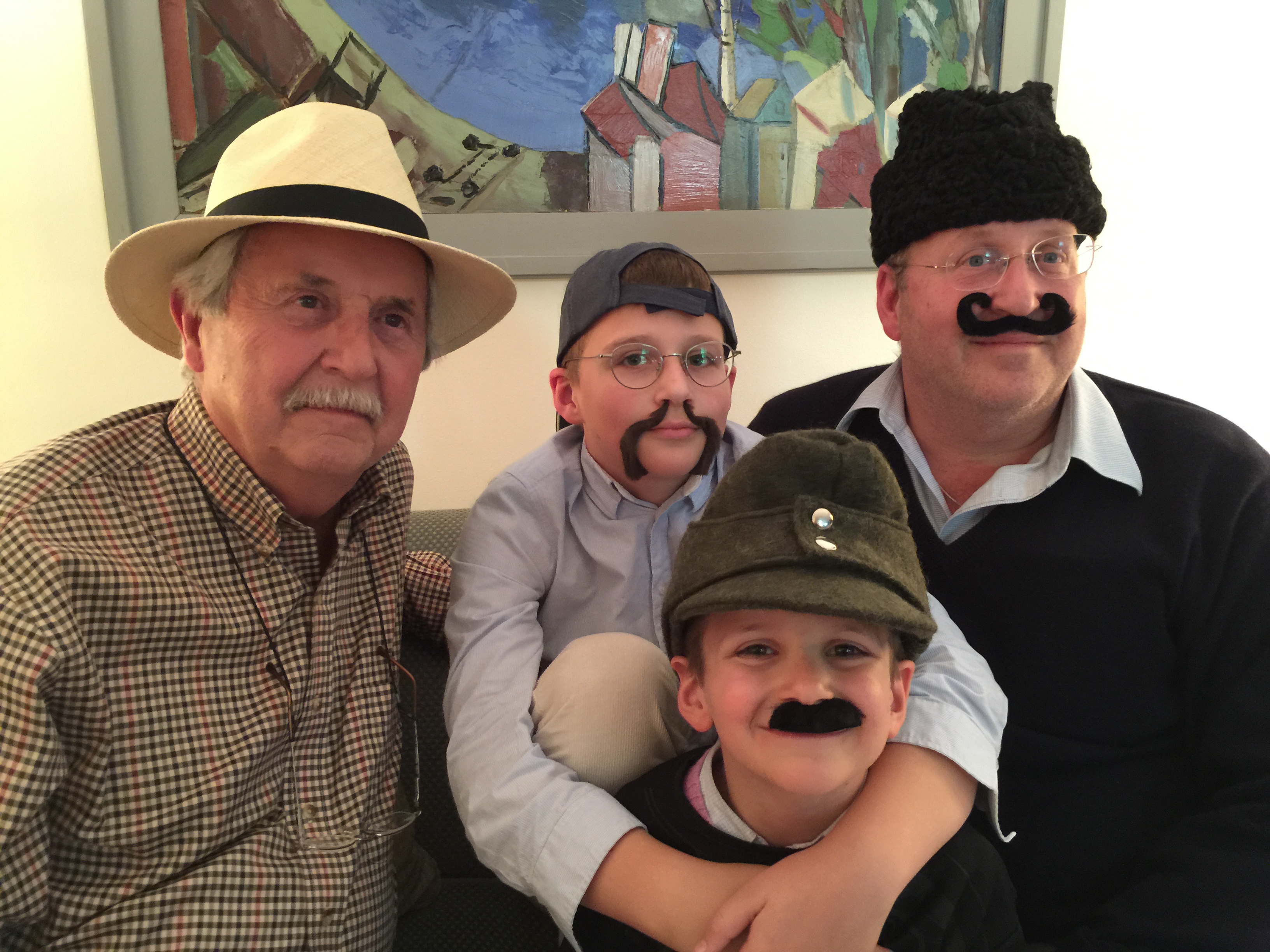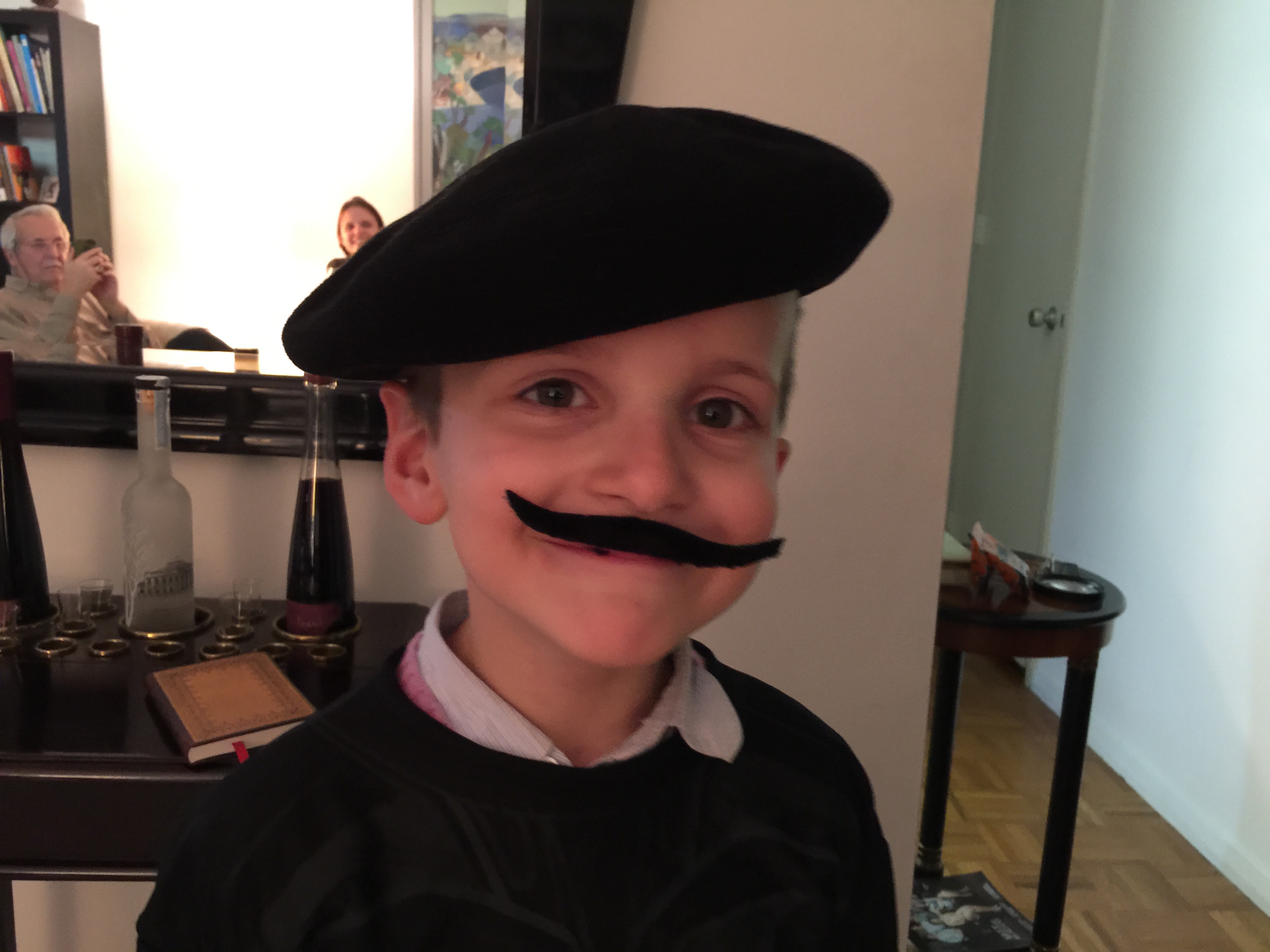 Well the dinner at Grandpere's turned out to be quite a wild one! Mary Anne had the fantastic idea to buy two "mustache kits". The boys put these to immediate use.