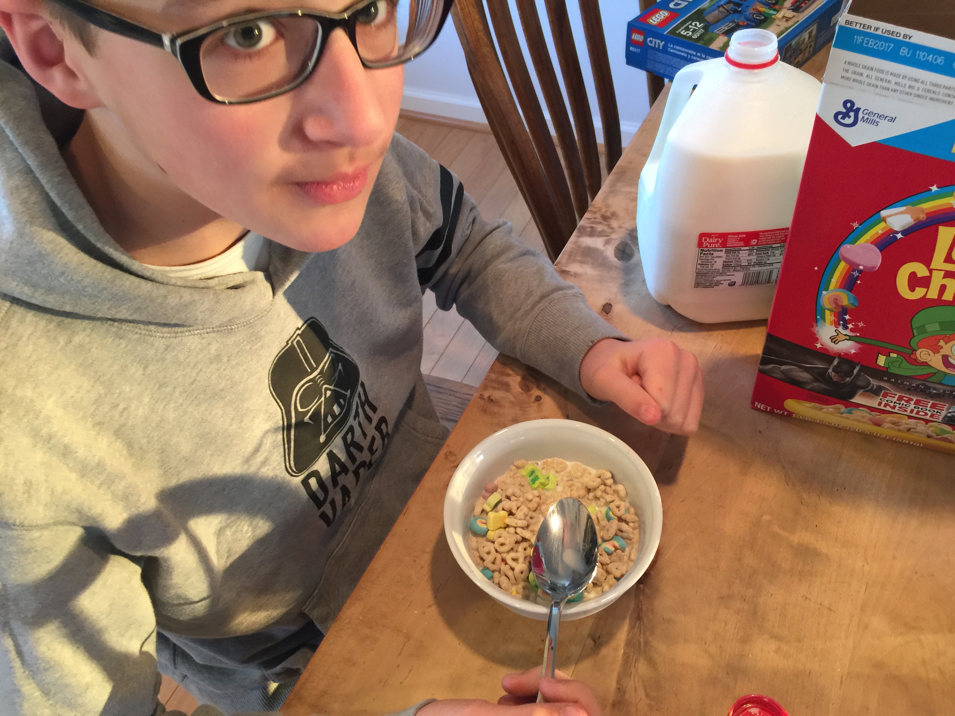 Gabriel: Lucky Charms without milk. Of course. This is the right way.