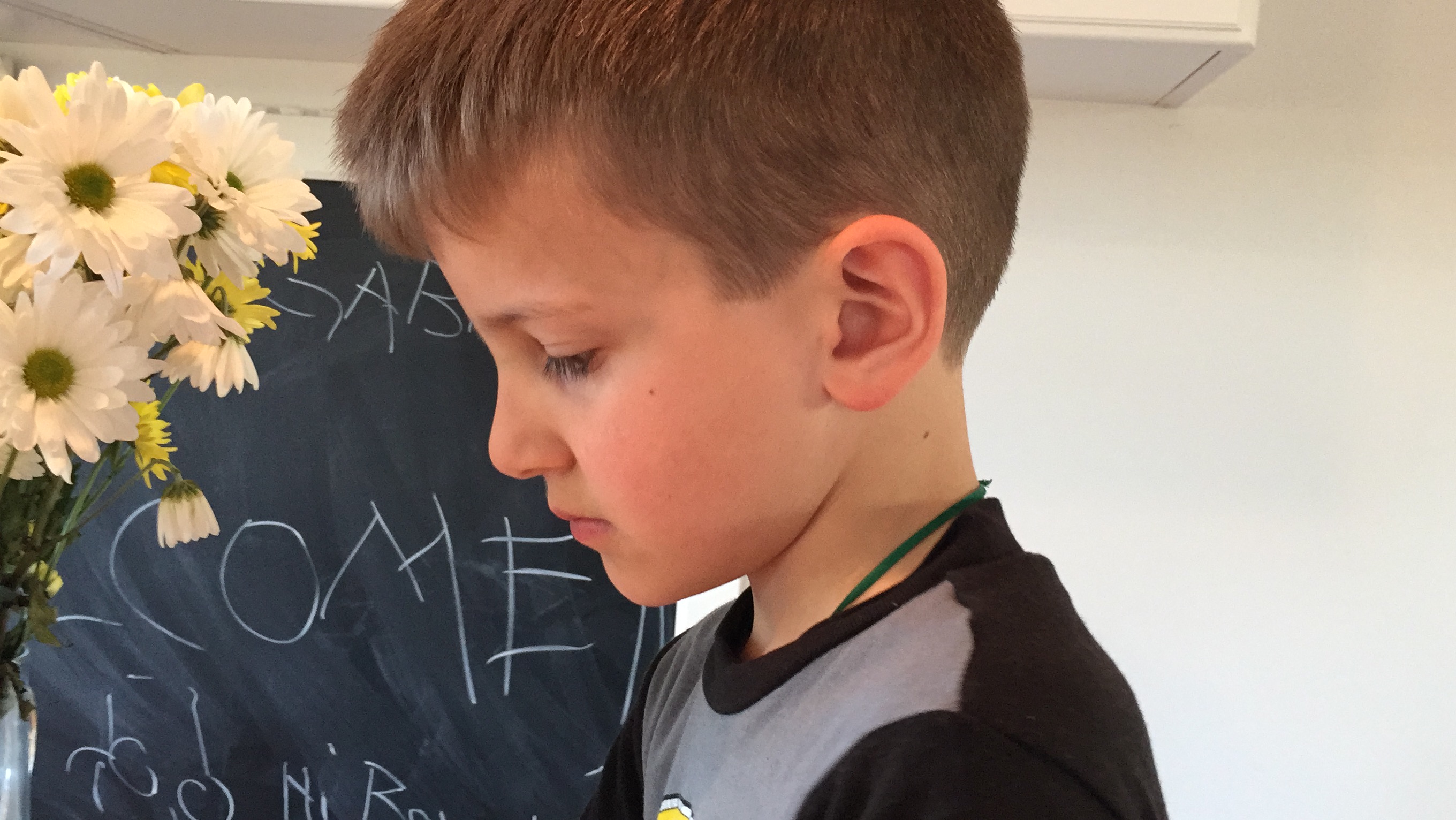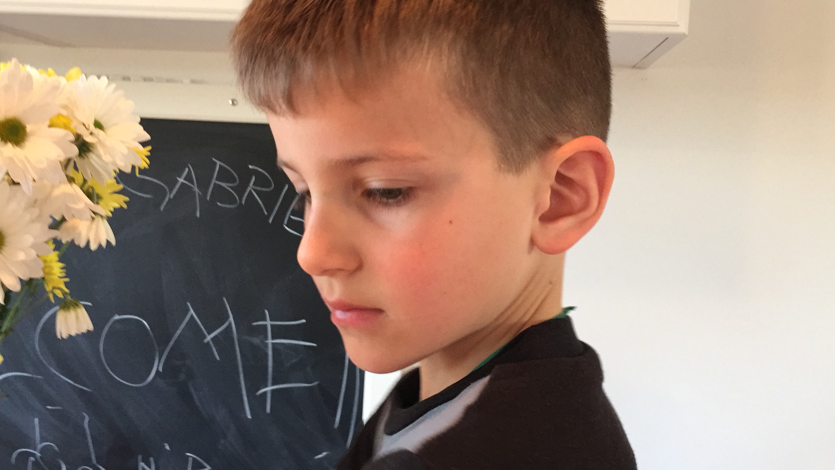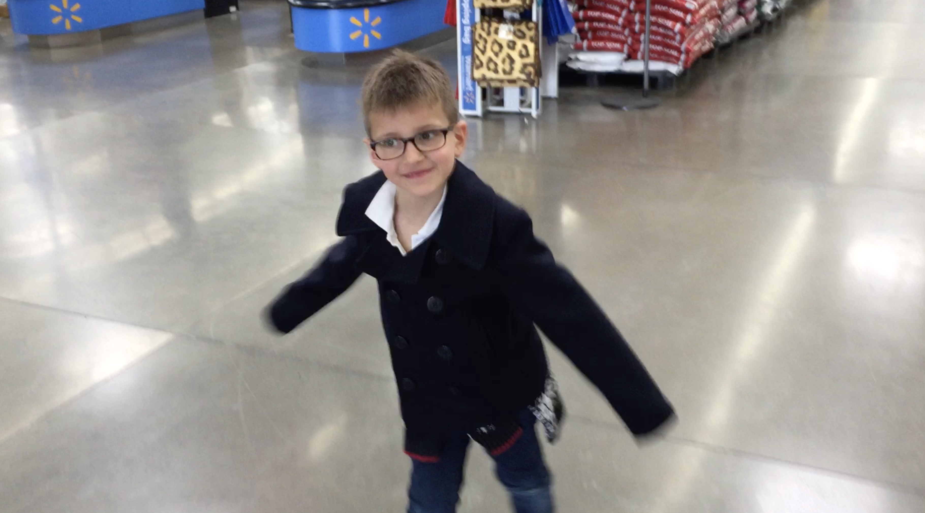 I kept telling Maxime not to grow, pushing down on his shoulders. And he and Mama would laugh. And he just didn't listen!