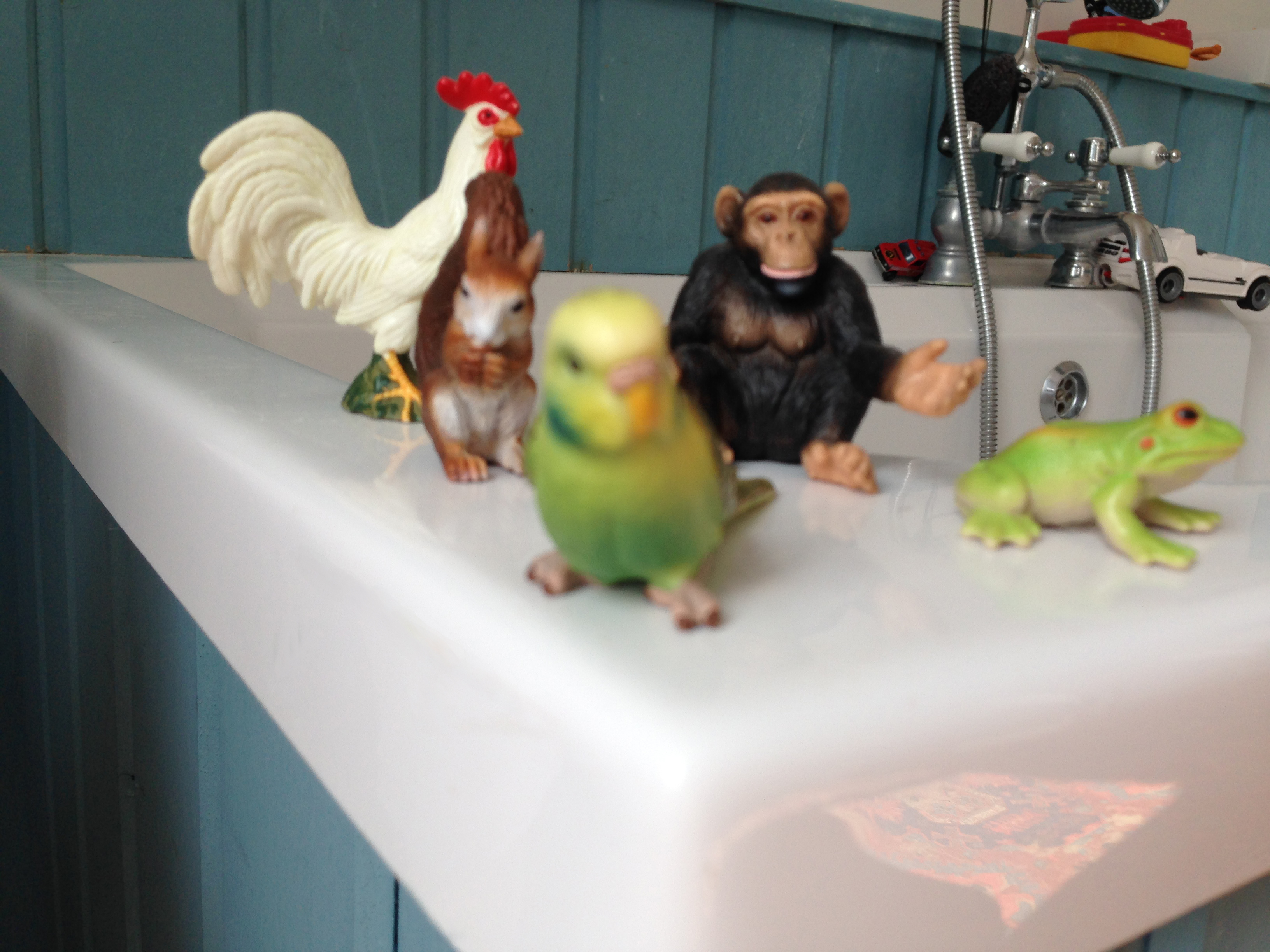 We play with all sorts of toys at bathtime, me and Gabriel.